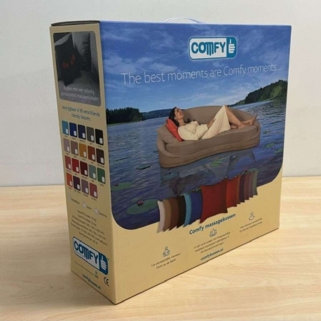 With the Comfy massage and heating cushion you can relax, take a moment for yourself. Ultimate relaxation through massage and infrared heat for feet, legs, neck, shoulders and back, and available in various trendy colors. Choose the Original Comfy massage cushion for a combination of massage with infrared heat, or choose our latest Supreme, which can also be used separately on the reverse side of the cushion as just an infrared heating cushion.